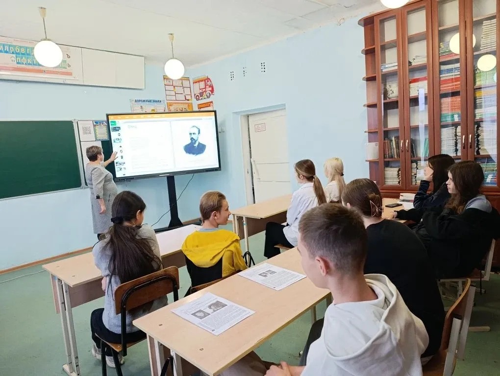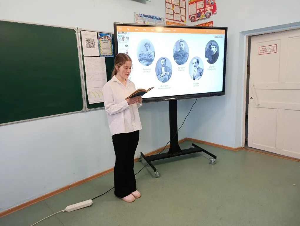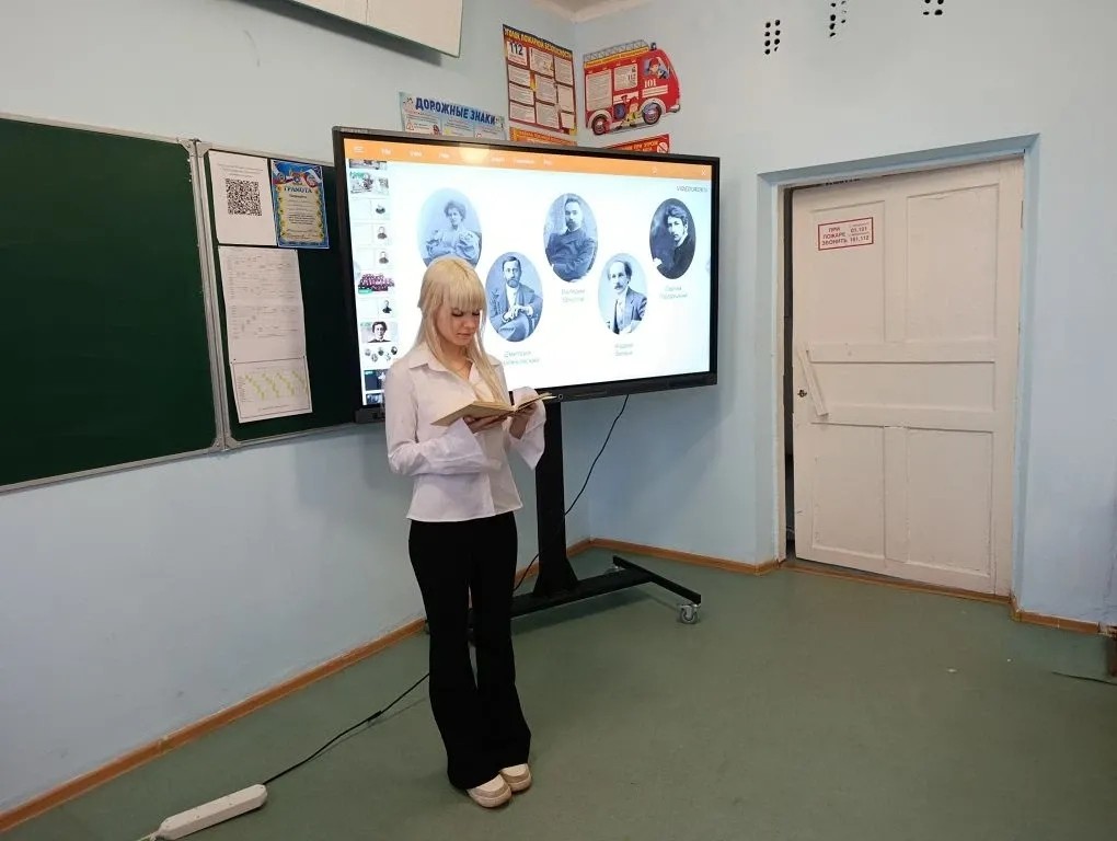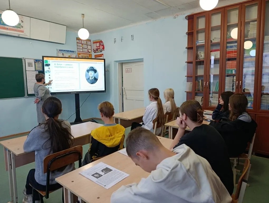 В рамках празднования 125-ой годовщины со дня рождения русского поэта Александра Блока в 9 классе прошёл урок поэзии . Ученики познакомились с биографией поэта и прочли его стихи .