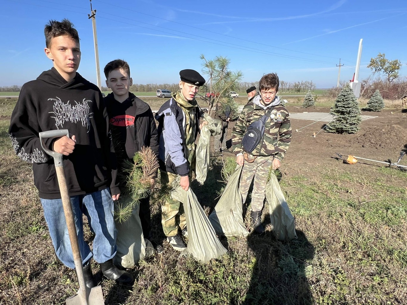 Не остаются в стороне и школьники МБОУ «Каменно-Бродская ООШ» имени Героя Советского Союза Орехова С.Я. Осенью 2025 года вместе с казаками Родионово-Несветайского юрта во главе с директором школы Нагибиной Е.Н. и атаманом Пуц А.В. навели необходимый порядок на территории памятника.
