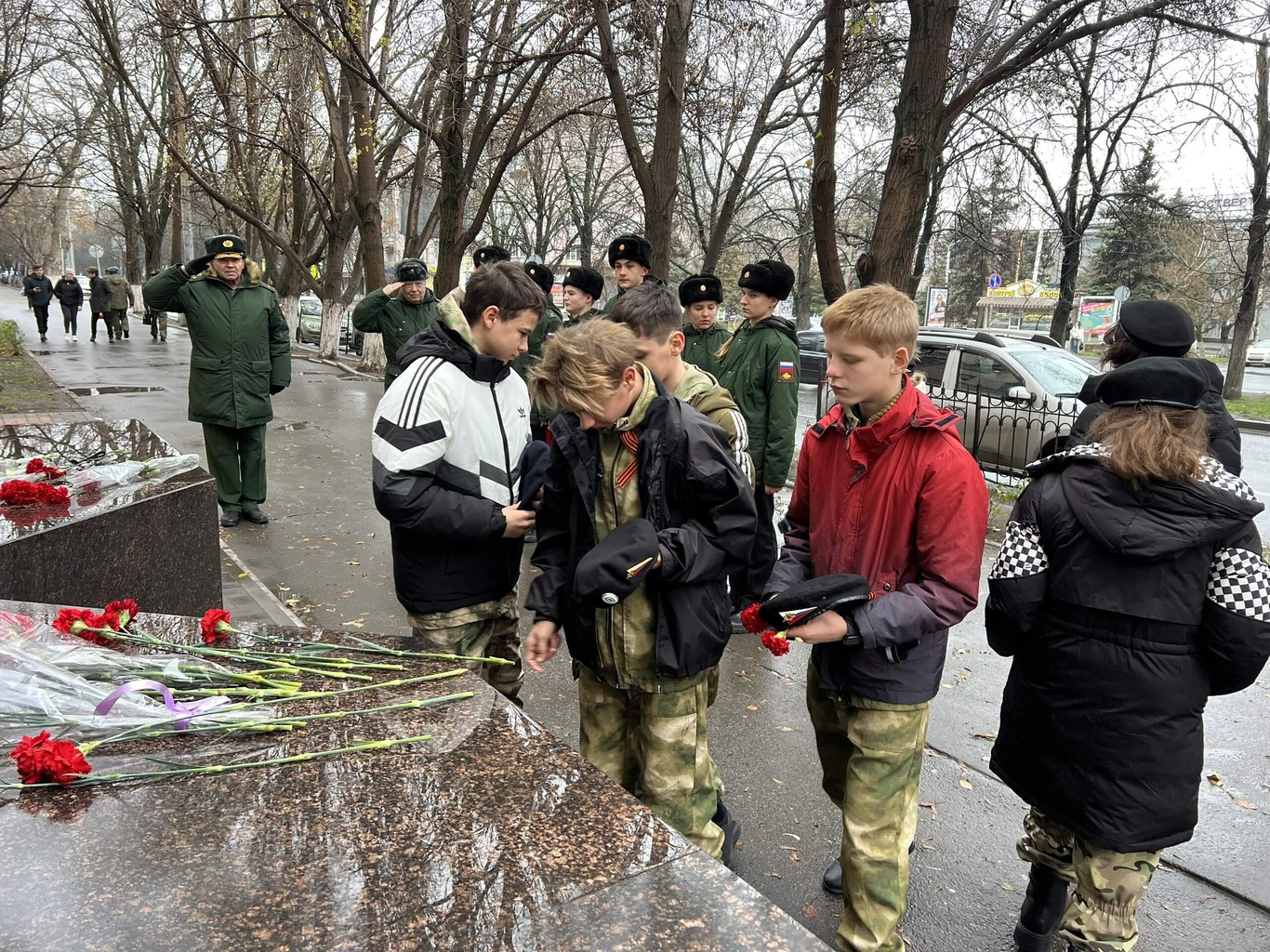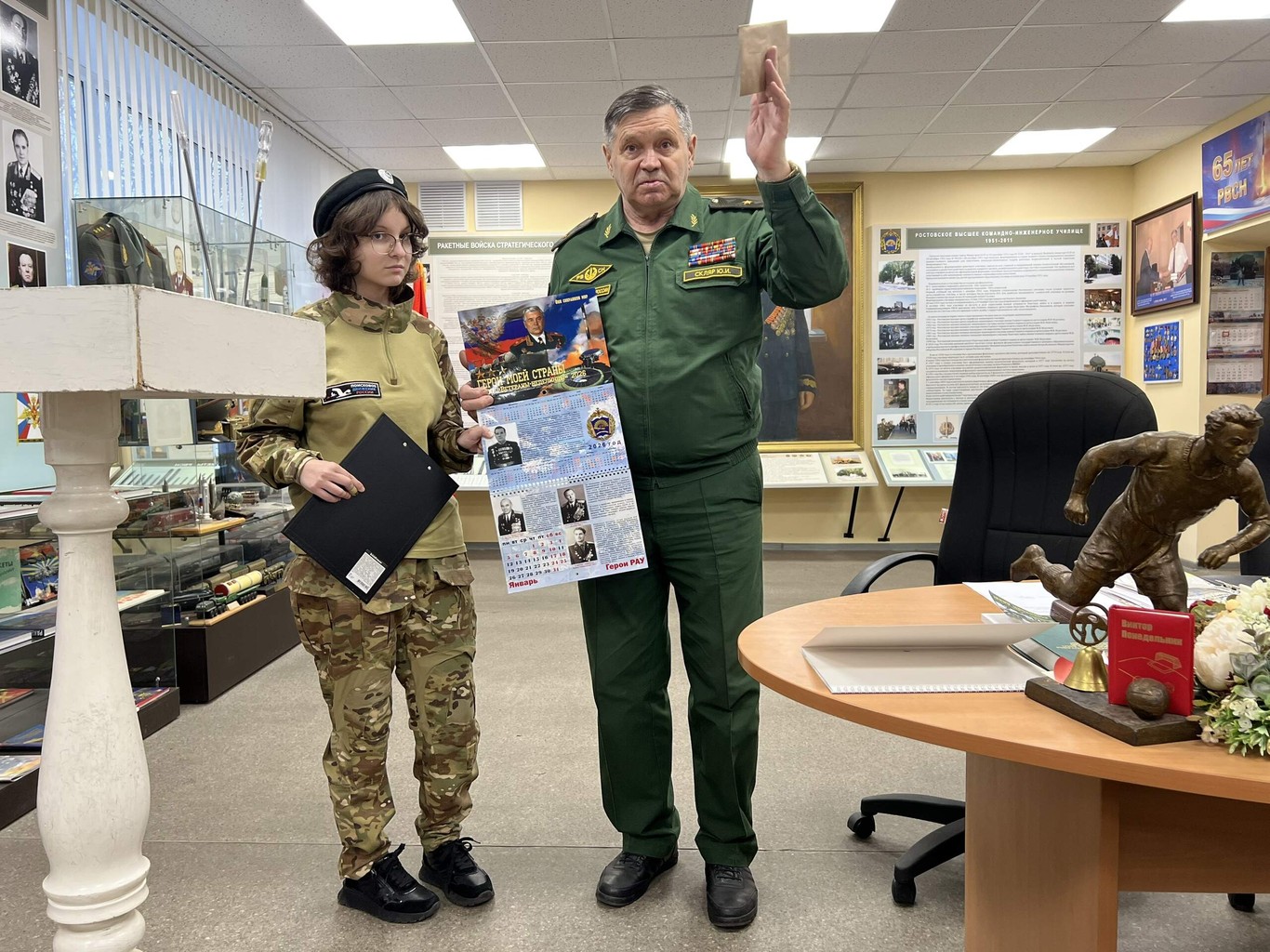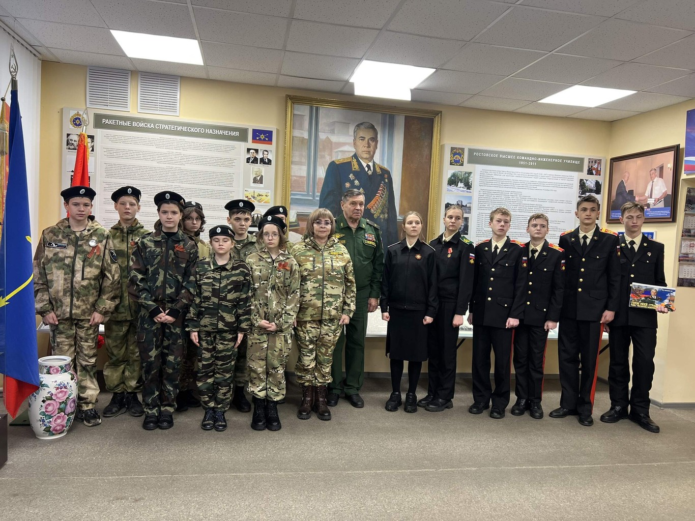 В День героев Отечества участники поискового отряда «Памяти РАУ» Каменно-Бродской школы вместе со своим командиром Нагибиной Еленой Николаевной, по приглашению генерал-майора Юрия Ивановича Скляра прибыли на территорию 183 УЦ МО РФ, расположенного на святой земле 1-го РАУ в городе Ростове-на-Дону.