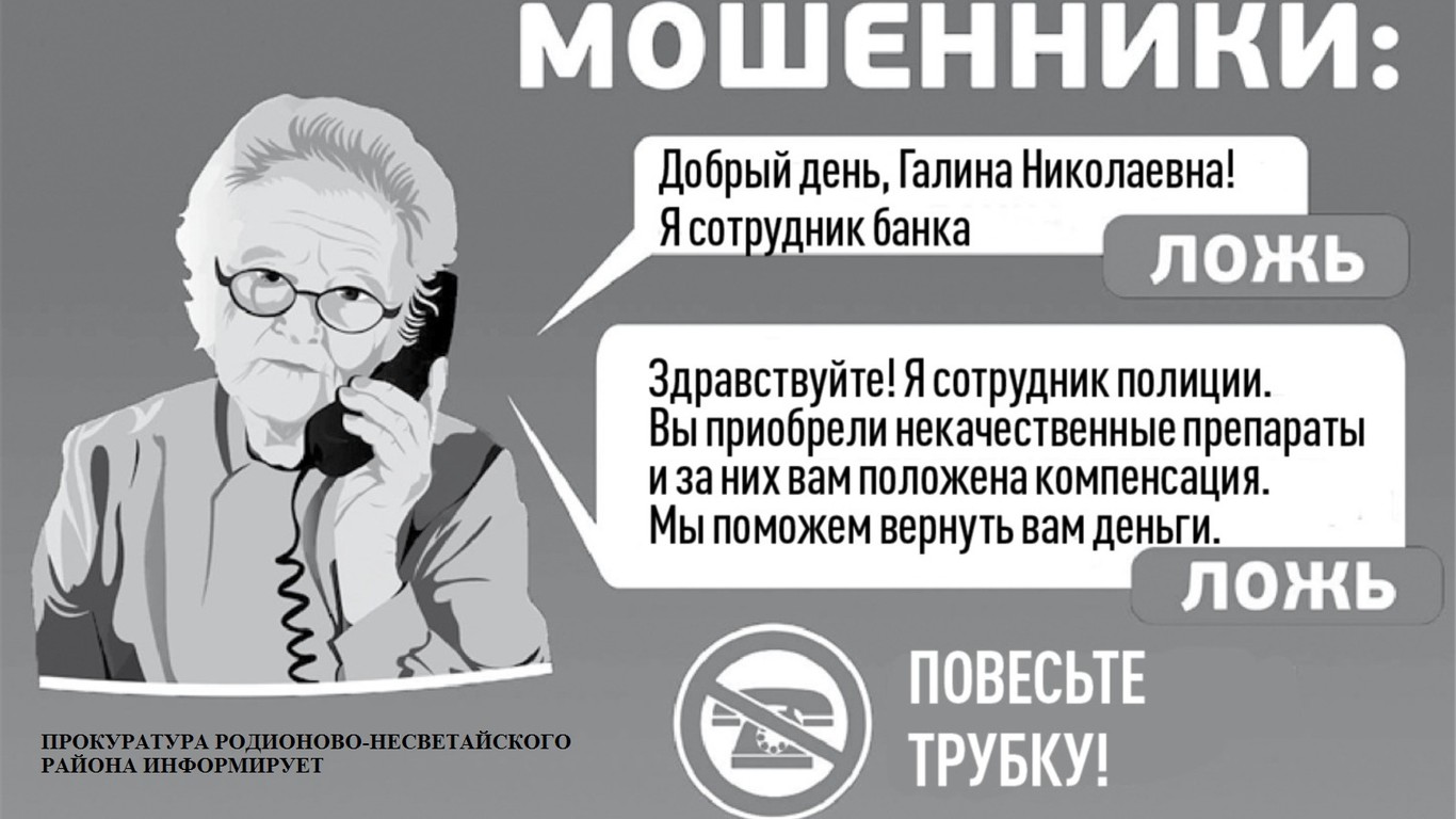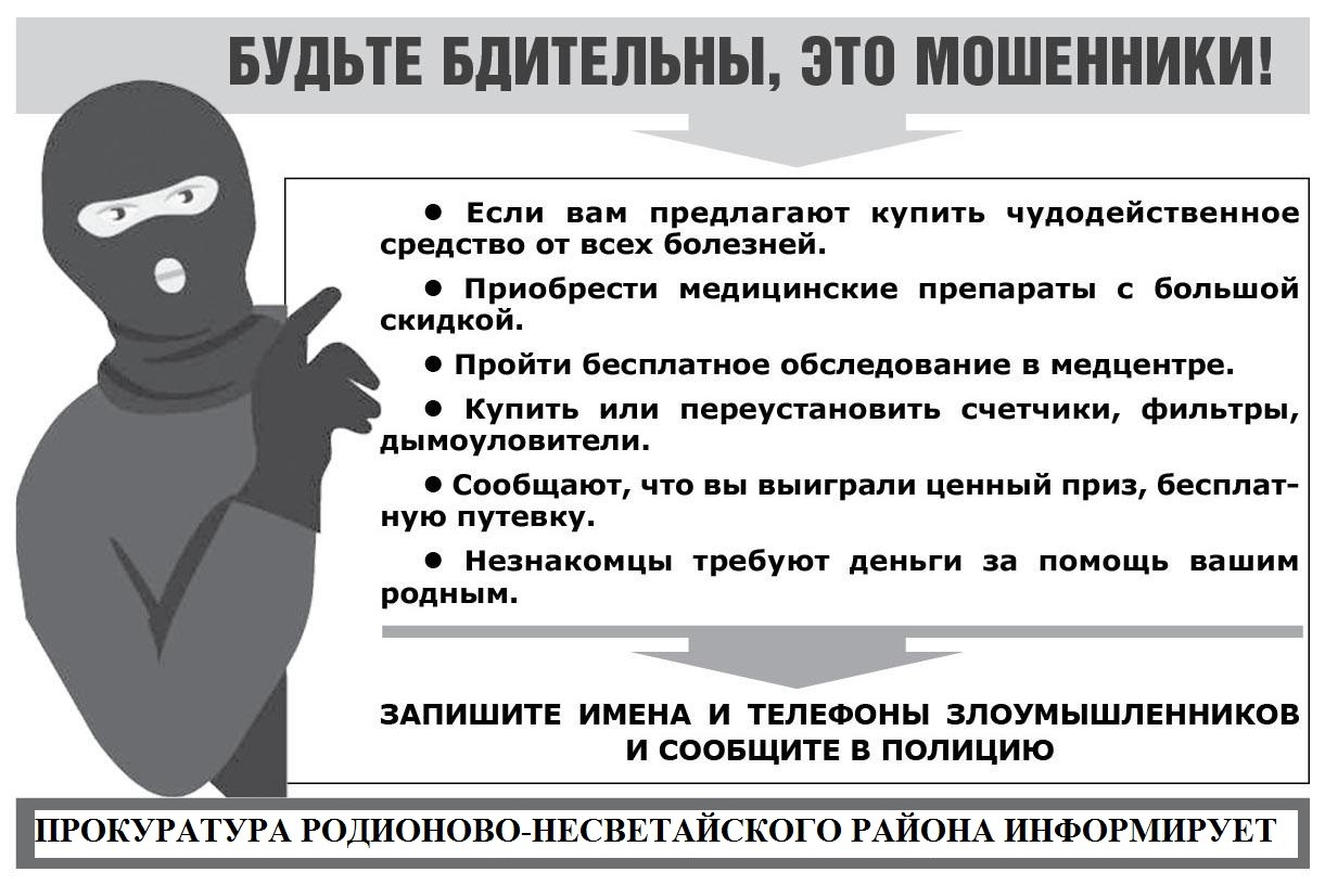 Информация от прокуратуры Родионово-Несветайского района "Осторожно! Мошенники!"