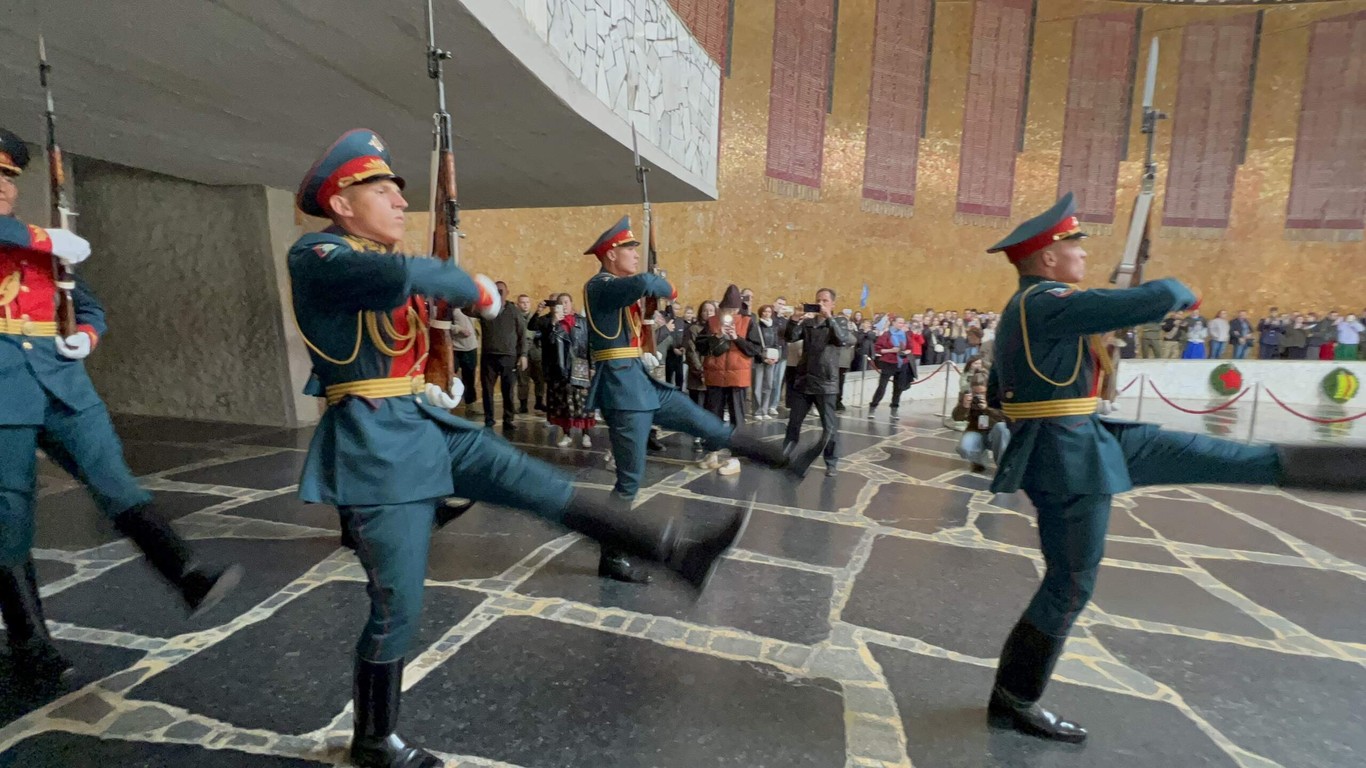 Школьники увидели смену караула у Вечного огня в Зале Воинской Славы. Зрелище восхитило всех присутствующих. Солдаты из роты Почетного караула Волгограда все, как на подбор.